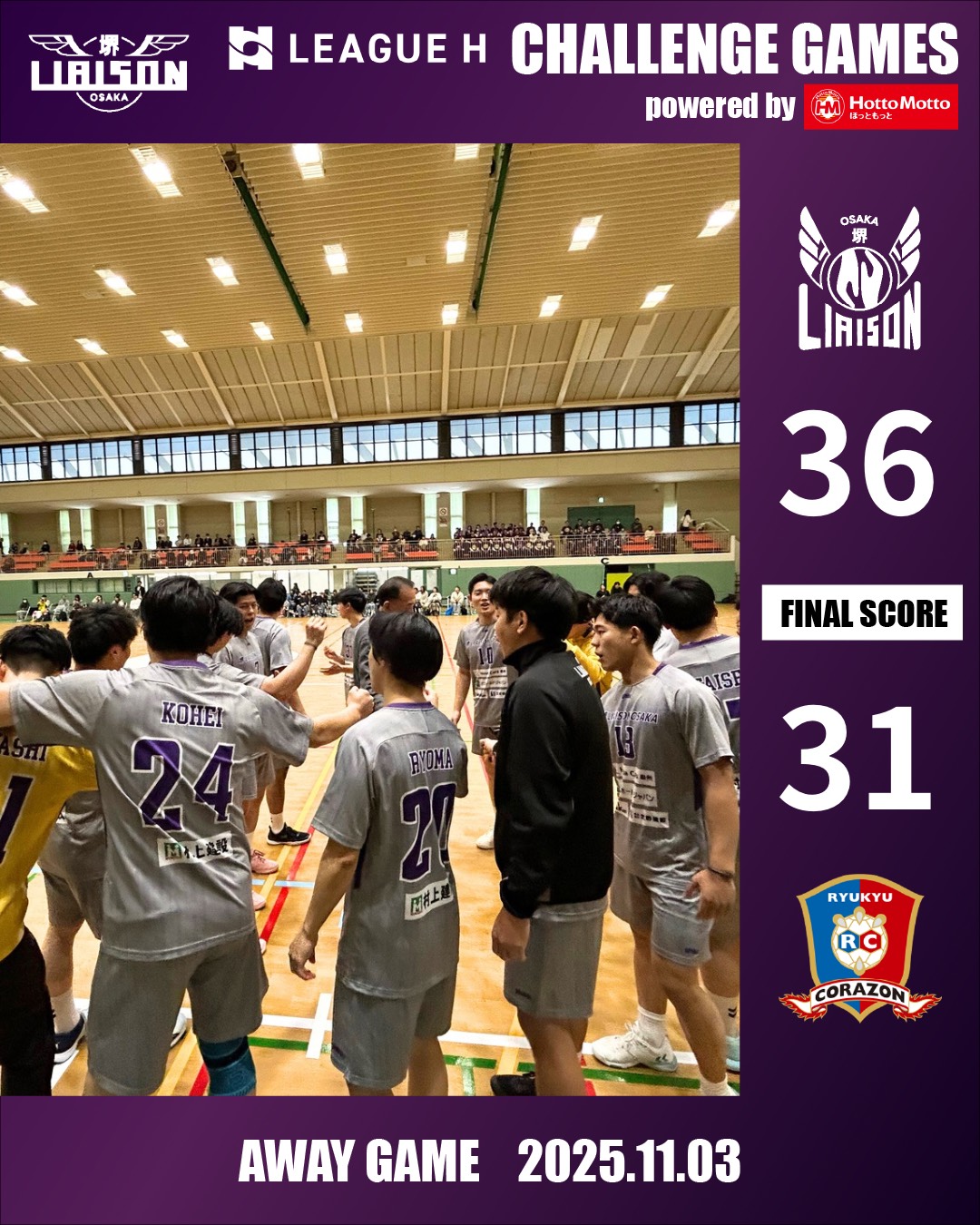 本日11/3(土)、大阪(泉大津市)で開催されたリーグHデビュー戦を見事勝利で飾りました!
